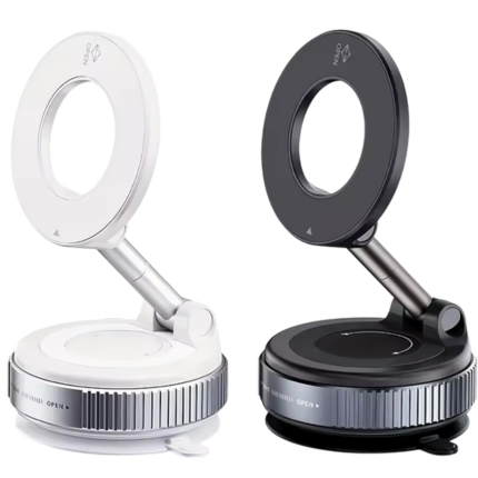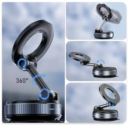 - Vakuum-Saugfuß – haftet zuverlässig auf glatten Oberflächen wie Armaturenbrett, Glas, Fliesen oder Schreibtisch